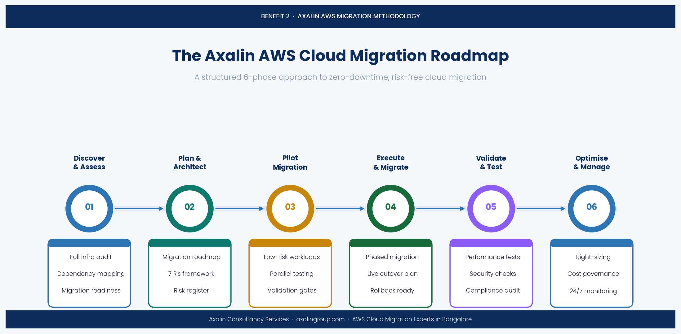 Bangalore's startup ecosystem, in particular, benefits enormously from this structured approach. A fast-growing SaaS company cannot afford weeks of downtime during a critical migration window — an experienced AWS partner ensures the transition is seamless, tested, and reversible at every stage.